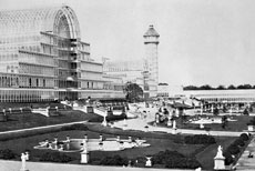 水晶宮は1851年の万博の際にロンドン郊外に建てられた鉄骨ガラス張りの大展示場で、パリのGrand Palais(1897~1900年に建設)、Petit Palais(1900年)の先駆といえる。exposition universelleはいまや日本でも「エキスポ」の名でおなじみだが、英語ではinternational exhisibitionとかworld's fairとかいう言い方が本来だろう。それはともかく、上の仏文では太字の2語がexposerという動詞の派生語であるところに意味がある。特に後者では上記の(1)すなわち「展示する」の意と、(4)すなわち「危険にさらす」の意とをダブらせ、展示品の魅力に負けて有り金を絞られたことを皮肉ったもの。