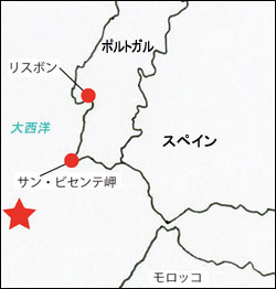 星印はリスボン地震の震源(推定)を示す