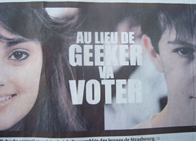 因みに、geekerとは元来はアメリカのCBSが制作したアニメに出てくるロボットだが、これが活躍するテレビゲームが今や大人気らしい。Google検索で、この棄権防止ポスターのビデオ版が見られる。選挙後も、仏語の聞き取りには格好の材料だろう。