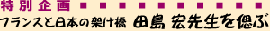 長く東京外国語大学フランス語学科教授として教鞭をとられ、日本フランス語フランス文学会会長も務められた田島 宏先生。1964年に同学科に入学した学生達の組織「メルシー会」は、2002年2月、その第1回会合にクラス担任であられた田島先生をお迎えした。先生の訃報がもたらされたのはそのわずか2年後である。