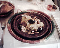 ここは17区のはずれポンカルディネの近くにある店。モロッコ風のたたずまいがオリエンタルな雰囲気をかもし出している。店の名前は3段という意味で3段上った所にある店というほどの意味だ。この名前はヴェルサイユにある有名なレストランと同じである。中はとても清潔で上品な感じ、出てくる食べ物もきれいというか潔い感じがする。ここはクスクスもいけるがタジンという肉の蒸し焼き料理がお勧め。言ってみれば富士山のような形をした蓋をして肉や野菜を焼くのだが上の所が煙突のようになっていて蒸気がでるしかけ。土鍋の一種なのだが一切水を使わず焼き上げるので味が逃げずふっくらと美味しくたきあがるのだ。 鶏とオリーブ、またはレモン風味、子羊とアーモンドとプラム、野菜のみ、たまに魚のもある。 鶏と塩漬けのレモンとオリーブのタジンが最初の人には無難かもしれない。 ちょっと慣れてきたらラムとアーモンドとプラムのタジンに挑戦してみよう。プラムがとろっとしてあまずっぱくラムの旨さと合いアーモンドがかりっとして実にあう。肉とフルーツにアーモンドの取り合わせなんていうとお菓子みたいで眼を白黒させてしまうかもしれないがフルーツの香りとあまずっぱさが肉の臭みをとってくれてヨーロッパの人もよく肉とフルーツを合わせる"シュクレ・サレ"(あまいのとしょっぱいのが一緒になっていること)と言う。 デザートは甘いオリエンタル菓子があるが日本人はこれでお腹一杯になってしまうだろう。あとは甘いミントティでしめくくろう。ときには下がどろどろのアラビア風のコーヒーでもいいかもしれない。 ワインはあちらのgris(グリ、ロゼなのだが色が薄くすっきりとした飲み心地)がお勧め。お値段はタジンで11〜14ユーロ、ミントティとで15ユーロ以内(昔の100フラン)で収まる。 無休 メトロ : Wagram