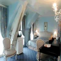 最近改装されたプチホテル。青・赤・黄の一色がテーマカラーとして、各ゲストルームをブリコラージュ。おすすめなのは、5階にあるテラス付き青のスイート。パリの街並を眺めながら、テラスで朝食が楽しむことができる。文字どおり中心のロケーションで、観光に、夜のそぞろ歩きに便利なのはいわずもかな。